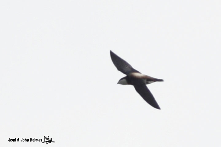 Below is a photo of a White-throated Needletail from the birds of Korea website which seems to have a less extensively white throat. I would say our bird matches that reasonably well.