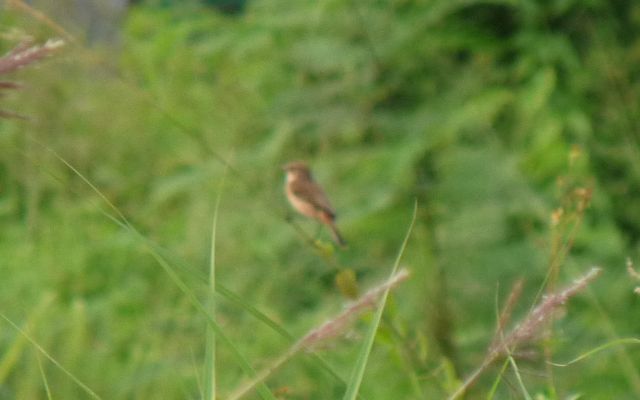 Another mystery warbler this morning (6.15 am), small and secretive, it called somewhat like a dusky warbler, a quiet tsak tsak.  It flew weakly over the tops of the ginger lily and dropped into cover.  Again all dark and small with little to distinguish it.  Pallas's Grasshopper Warbler?