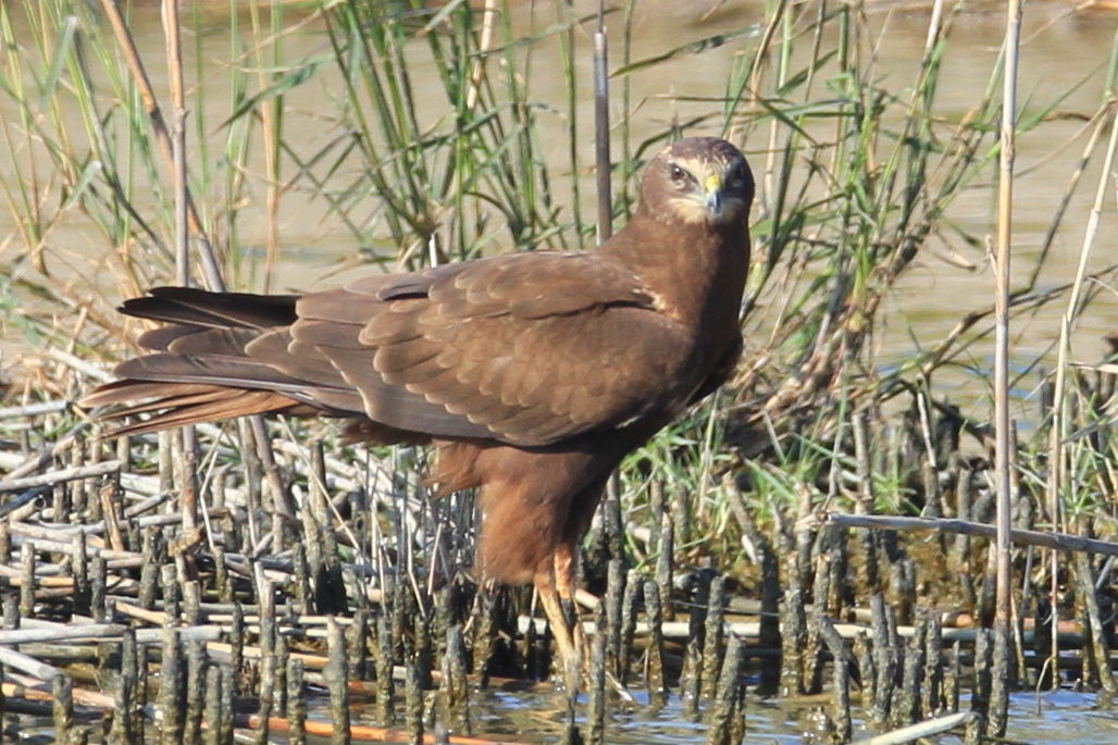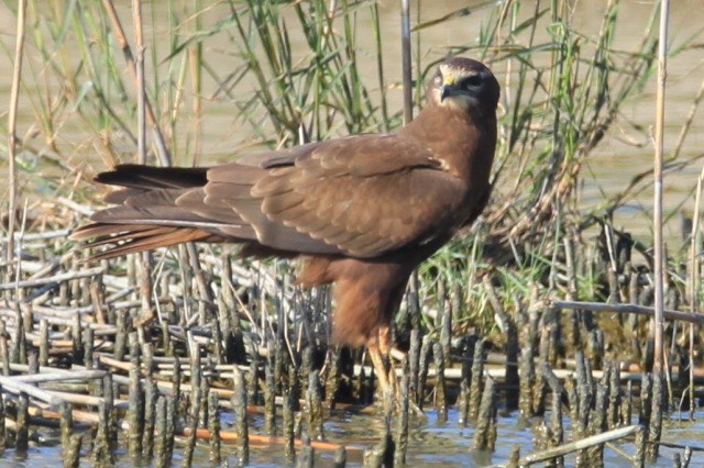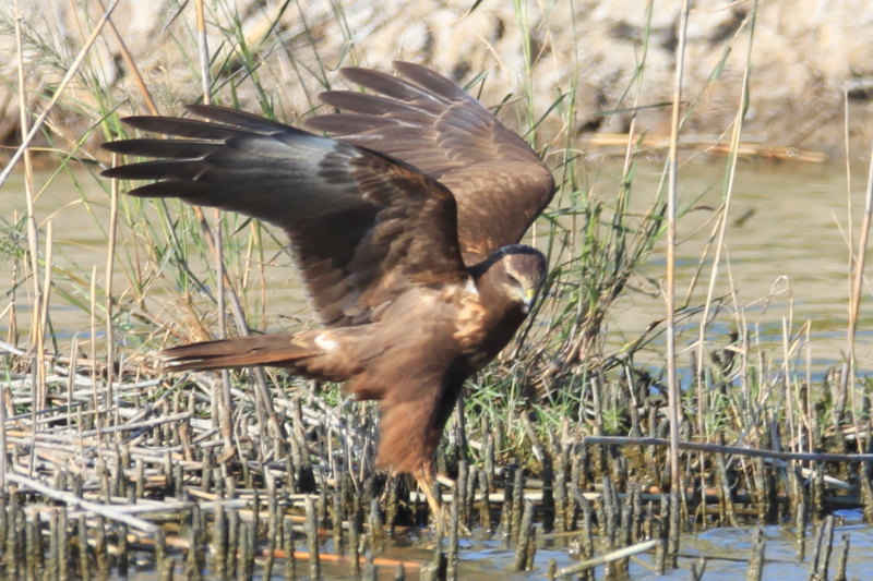 This bird to me is a juvenil Marsh Harrier showing some interesting features, especially on the head pattern...