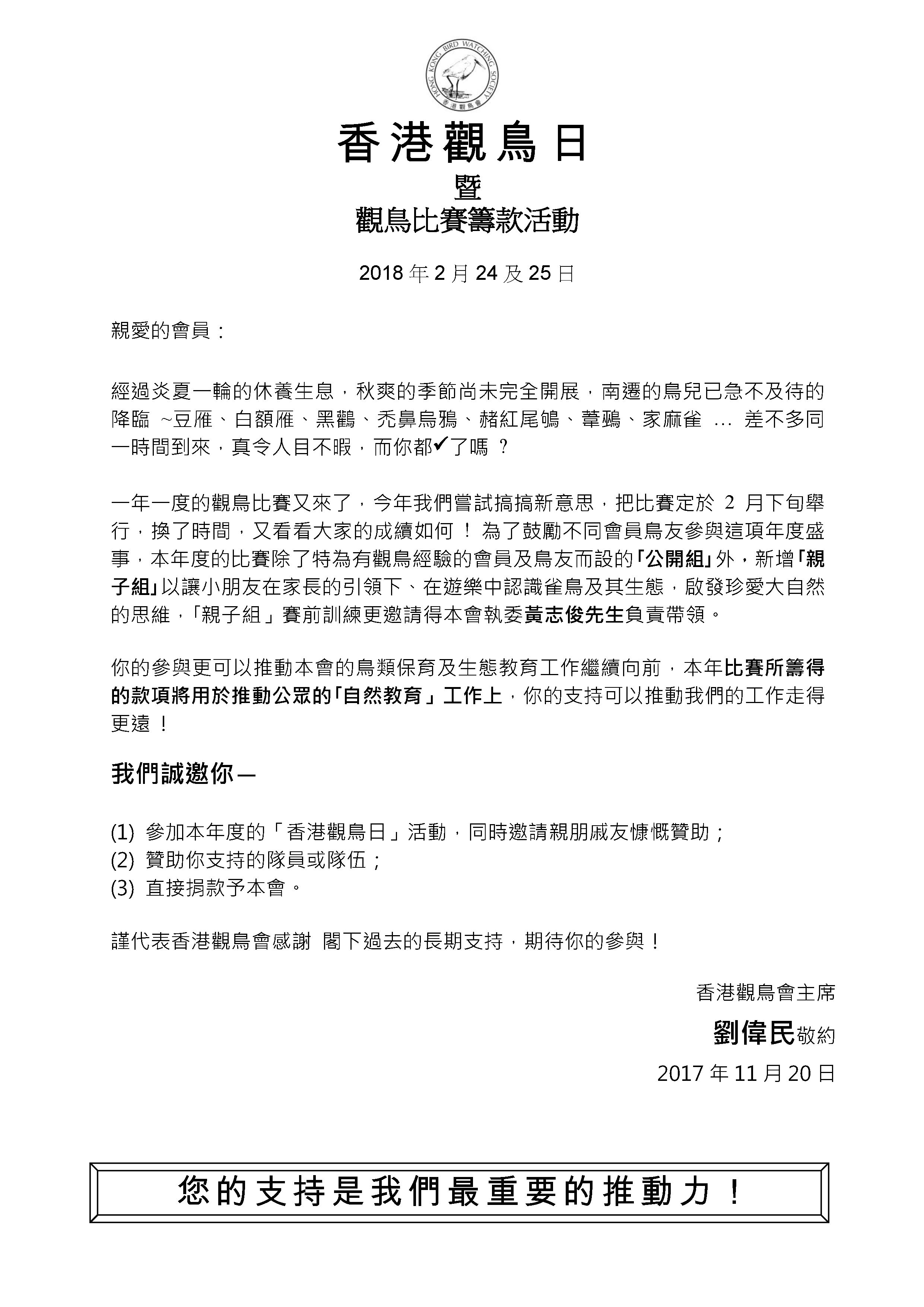 暨 觀鳥比賽籌款活動 2018 年 2月 24 至 25 日