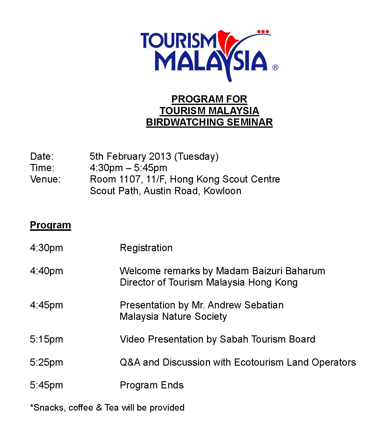 tourism_malaysia@ymail.com or fax to 2865-4610 by 4th February 2013 (Mon).