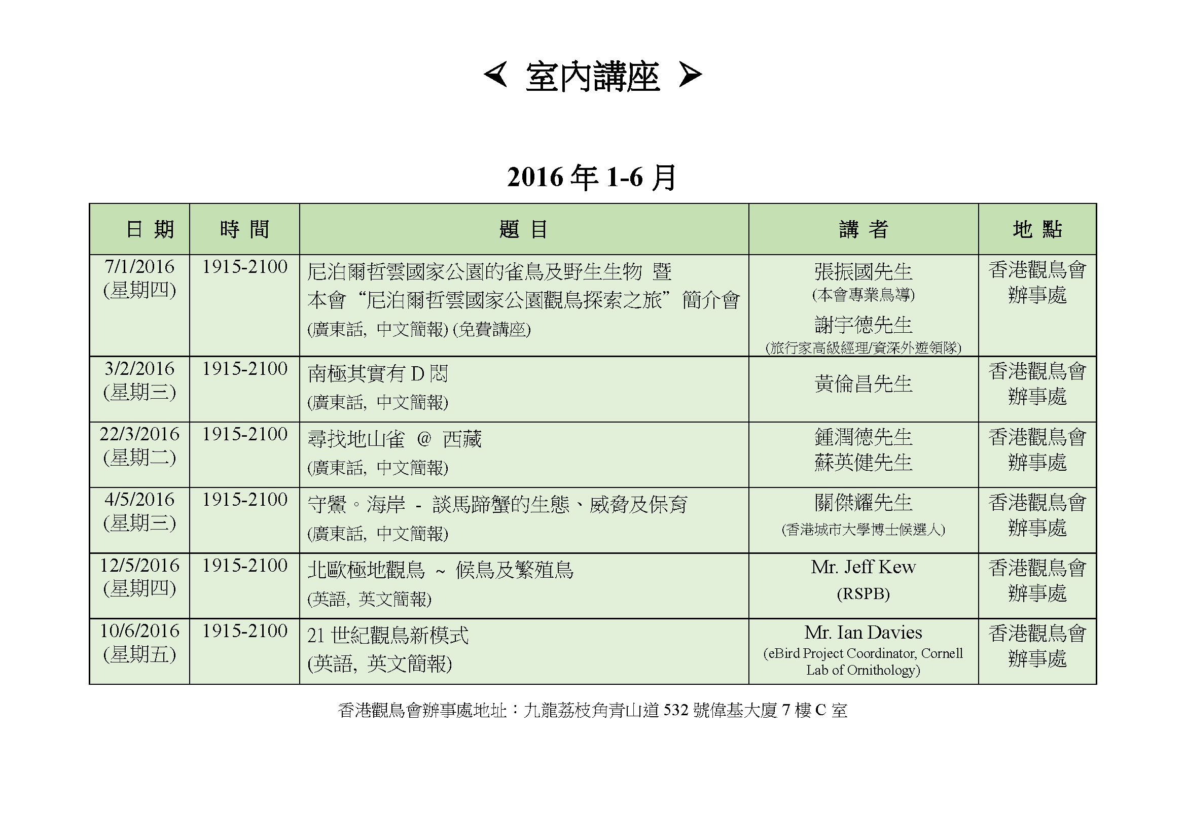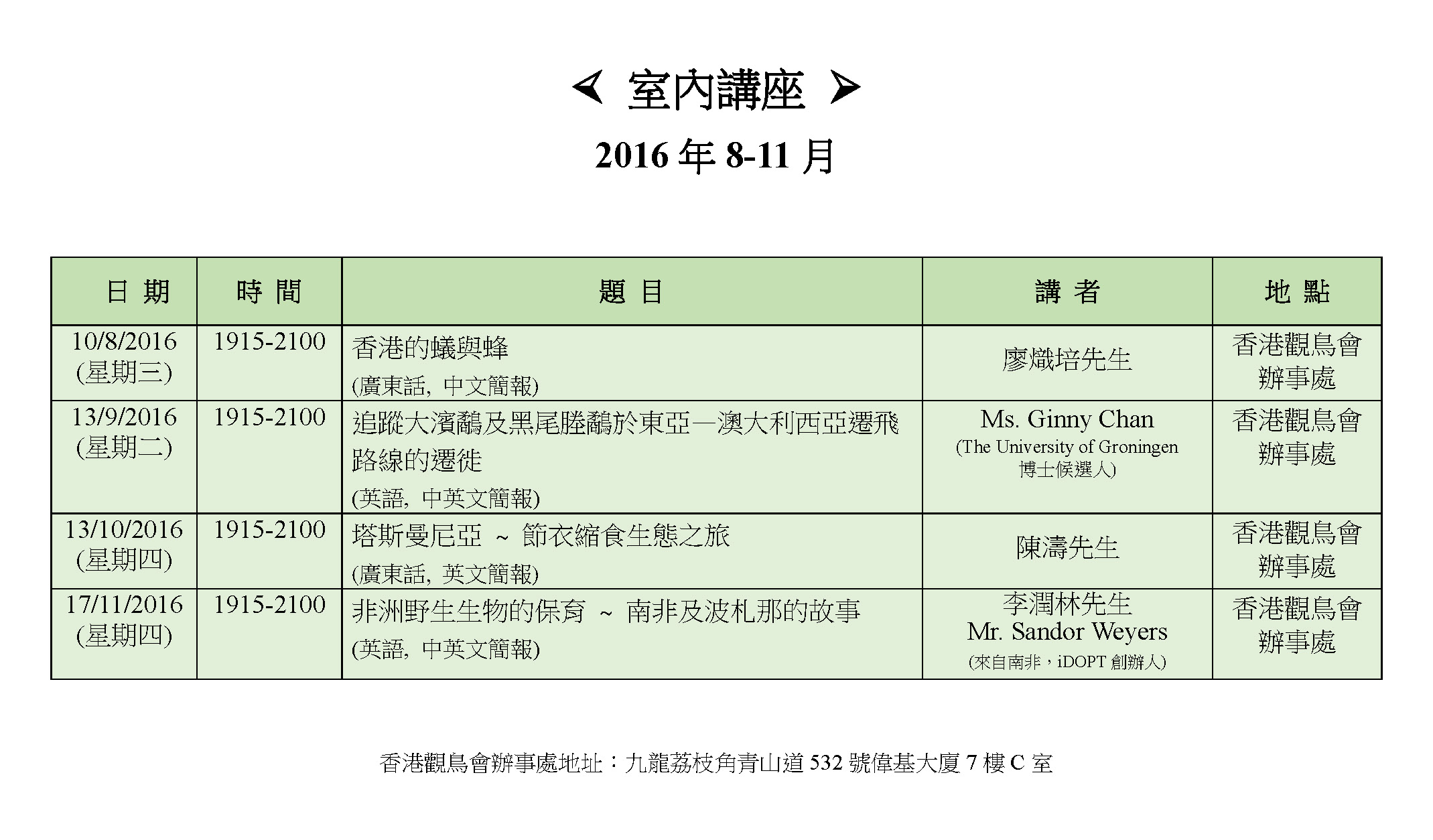 2016 室內講座Indoor Meeting