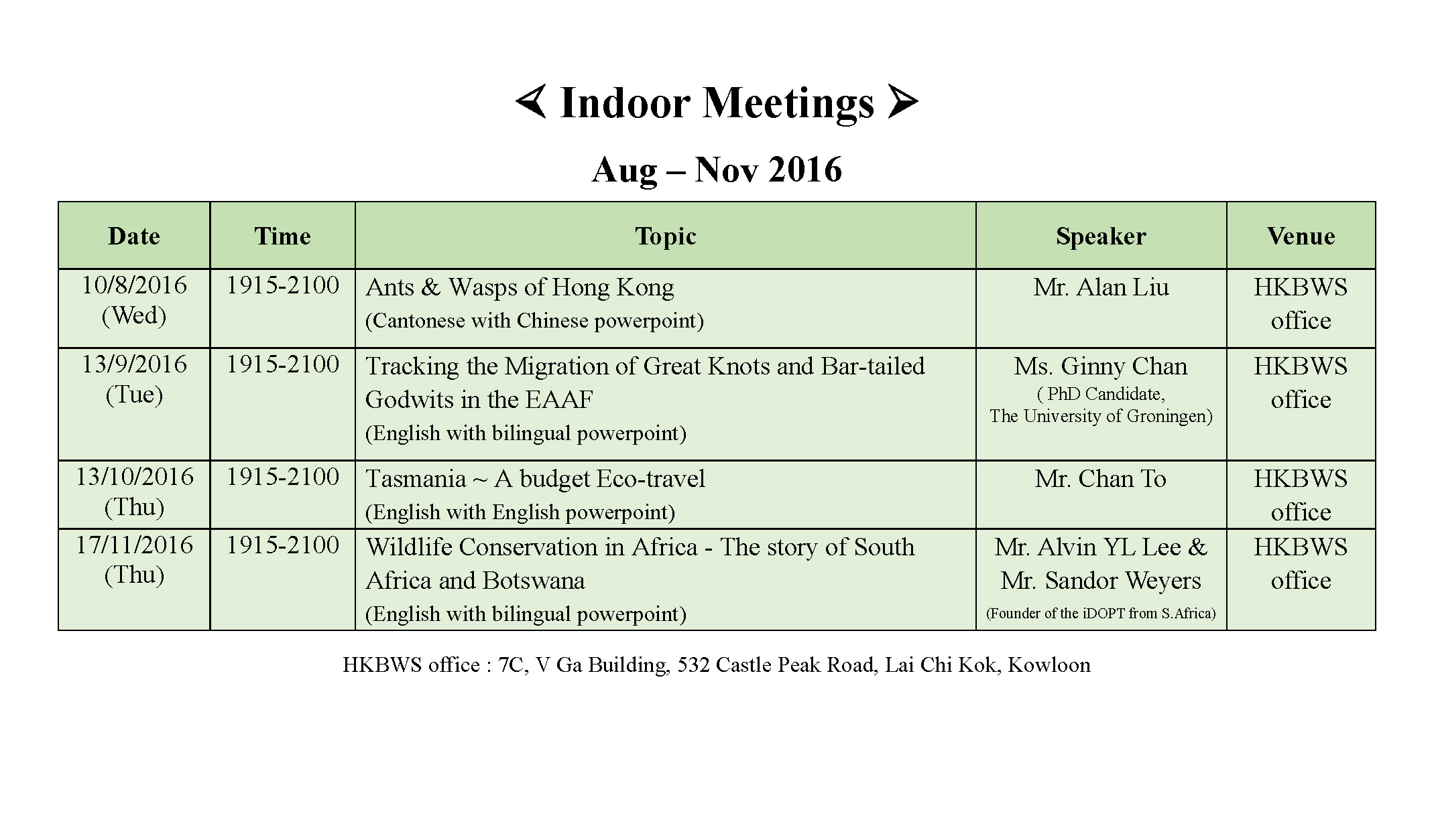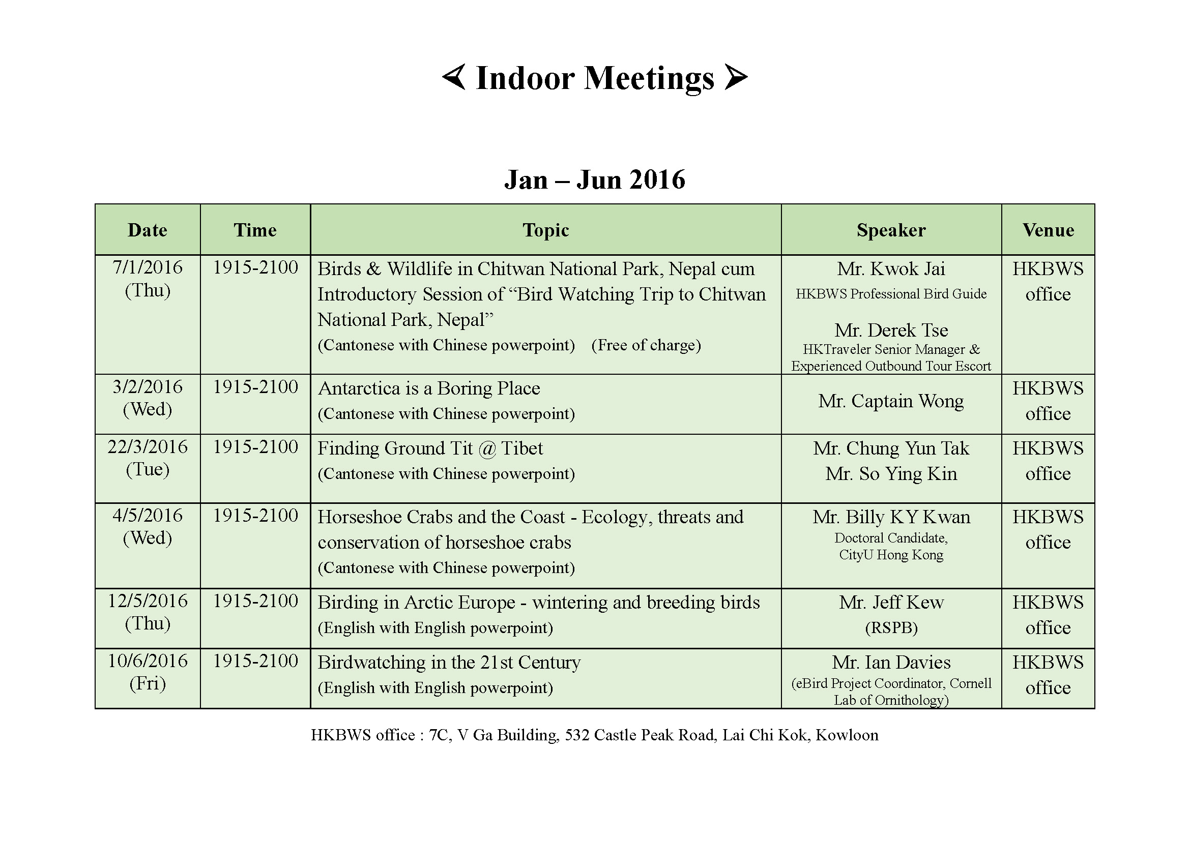 » 2016 室內講座Indoor Meeting