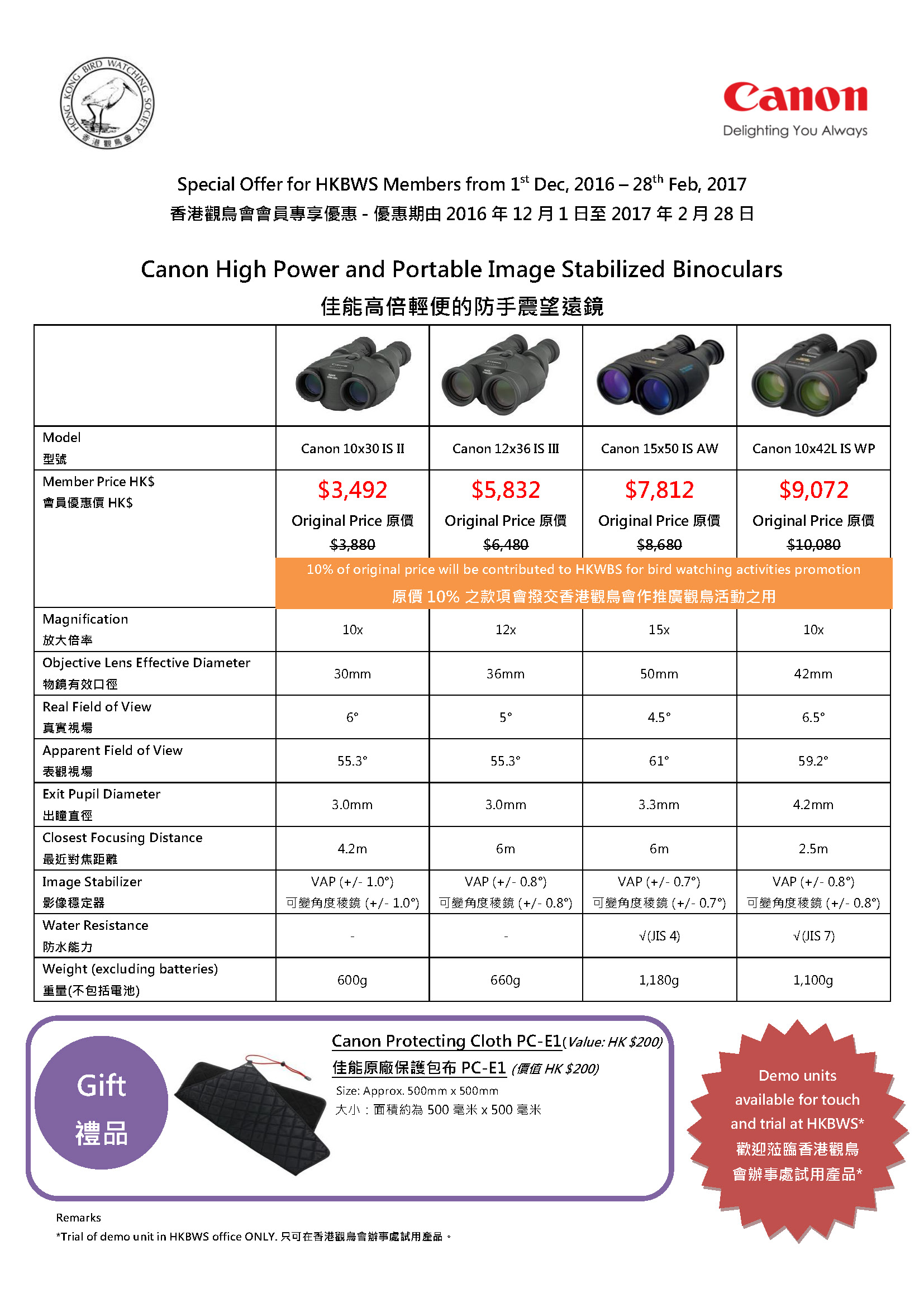 Special Offer of Canon Binoculars ~ Dec 2016 to Tue 2017
