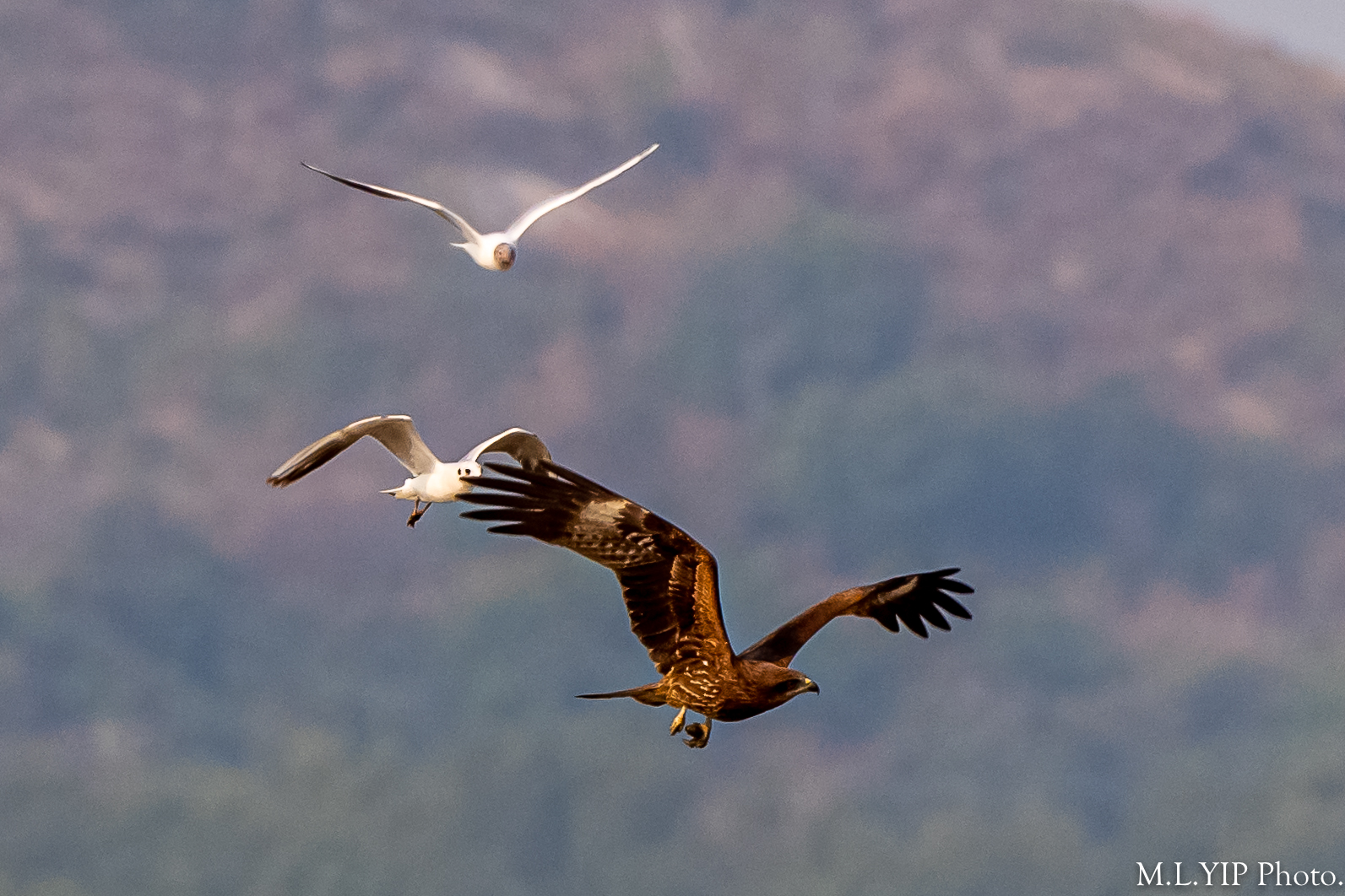 觀察所見,原來紅嘴鷗是真的很進取,似乎連黑鳶的收穫也打主算.不過最終祇是尾隨盯著.