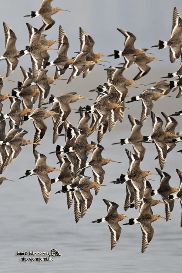 [Sandpipers] Black-tailed Godwits in flight