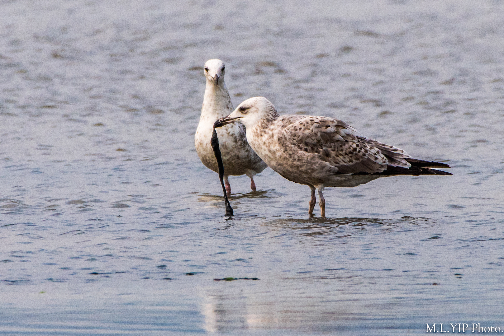 在泥灘上看到有一些海鷗似在吃海藻,難道它們真的是飢不擇食?