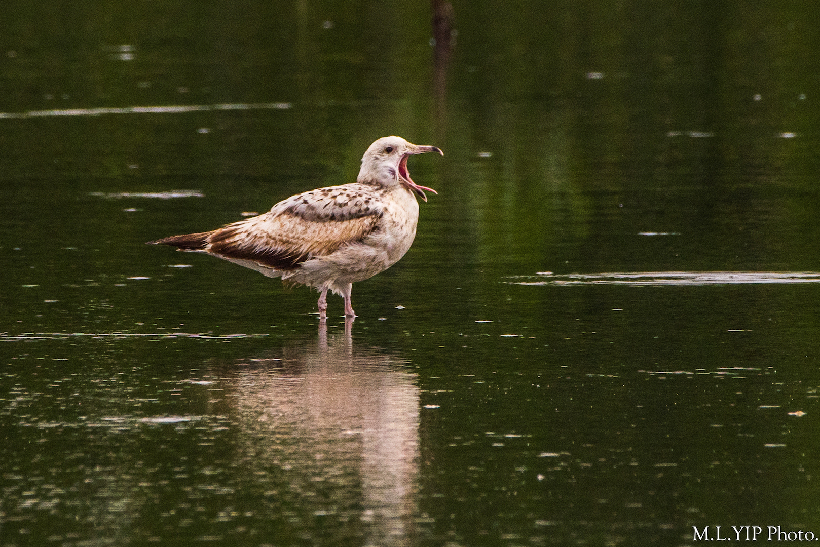 灰背鷗張口吐舌,乍看似是在引亢高歌,但其實它是沒有發聲.估計它是正在運動一下顎關節吧.