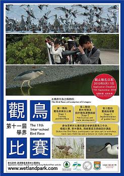漁農自然護理署香港濕地公園連同香港觀鳥會、香港大學生物科學學院、以及香港上海滙豐銀行有限公司,將於2010/11學年舉辦「第十一屆學界觀鳥比賽」。活動的目旨在普及學校觀鳥活動,一方面透過訓練學生觀察鳥類及其生態環境,讓他們掌握生態調查的技巧,另一方面鍛煉他們的團體合作精神,豐富他們在課堂以外的「其他學習經歷」。