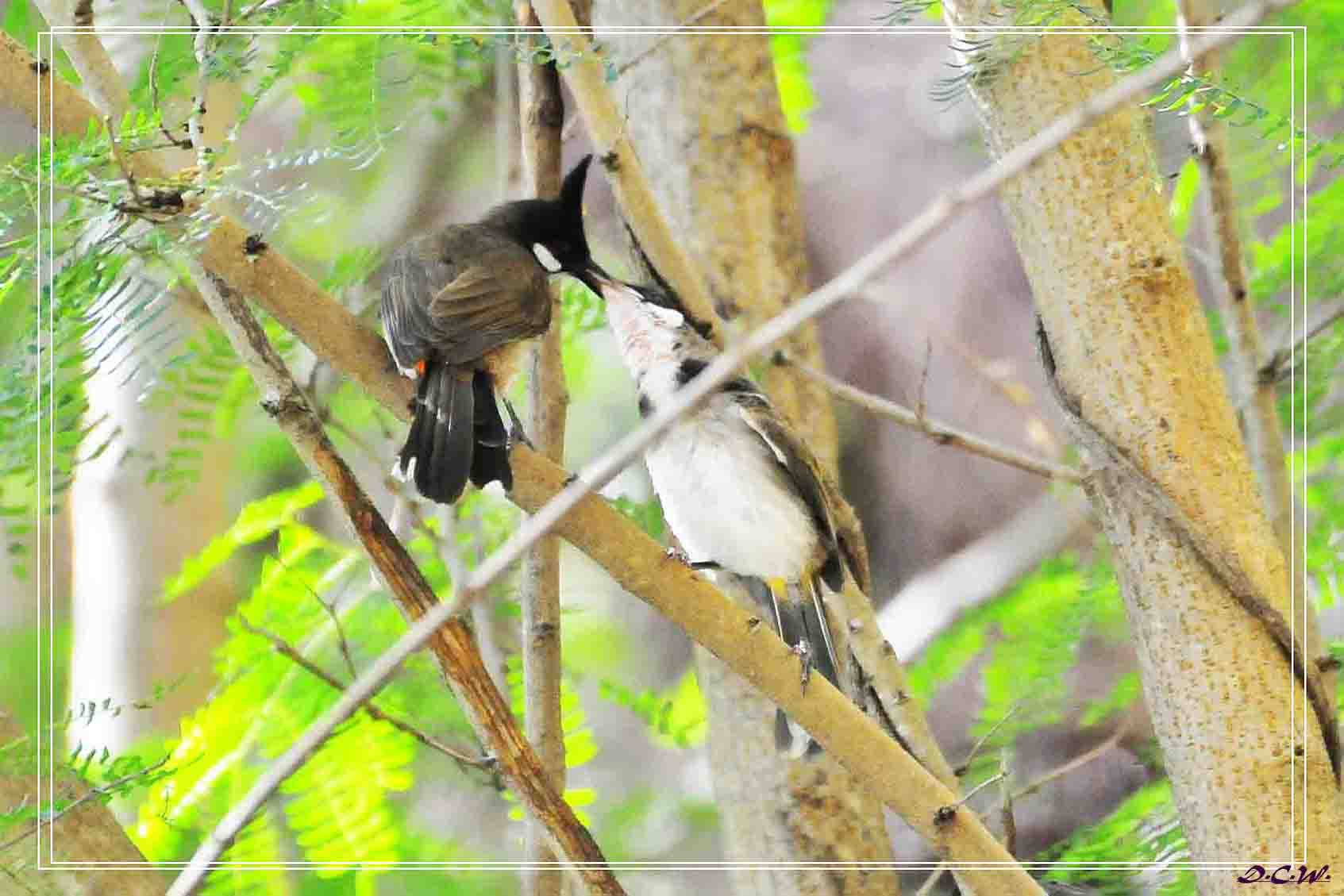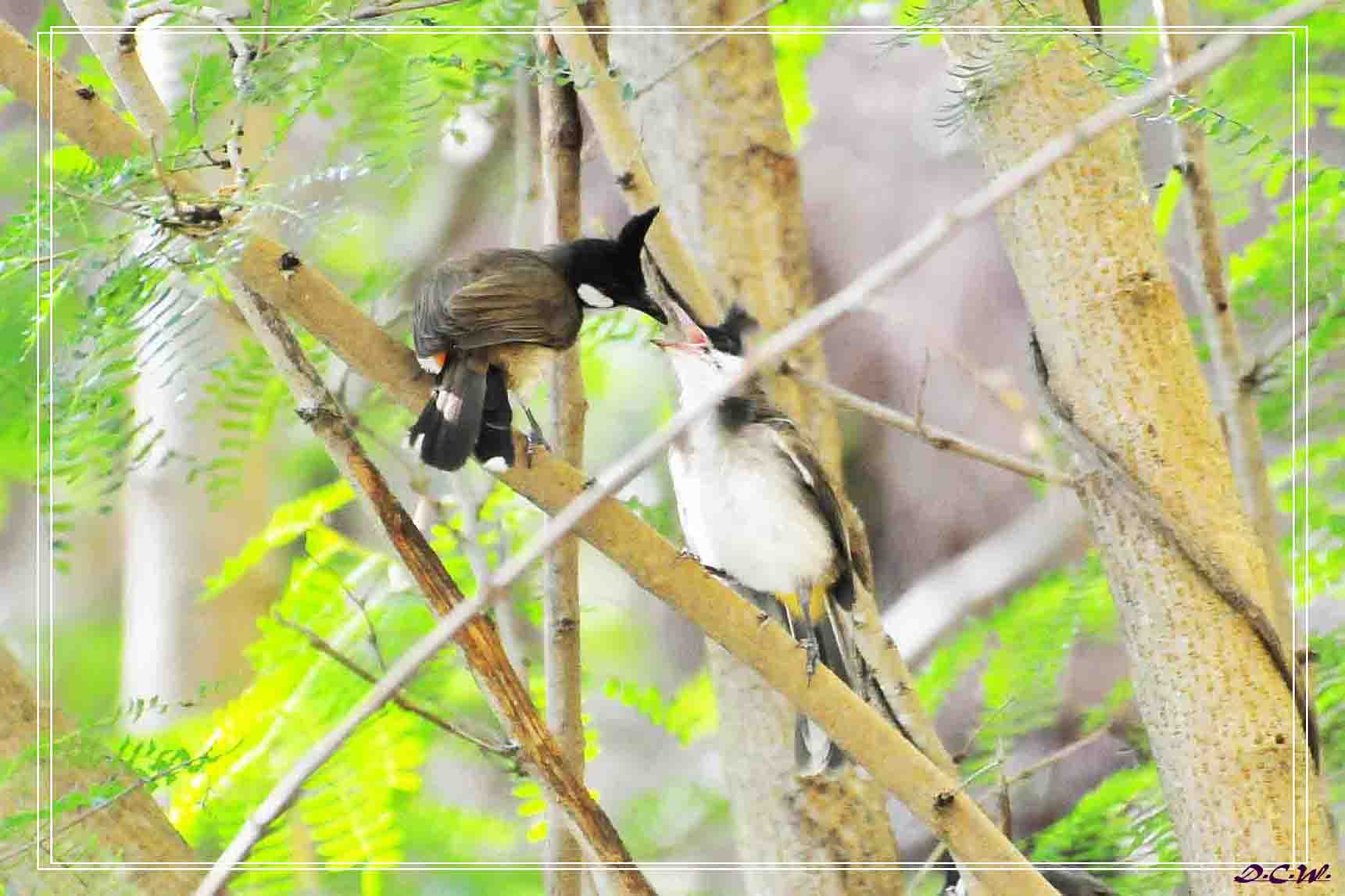 Red-whiskered Bulbul. 紅耳鵯. 成鳥與幼鳥.