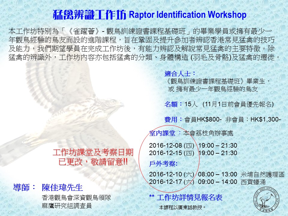 FULL滿額--猛禽辨識工作坊 2016-12 Raptor Identification Workshop