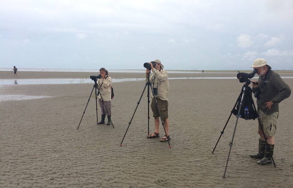 在泥灘觀察涉禽,找尋勺嘴鷸。(Guy Anderson攝)
