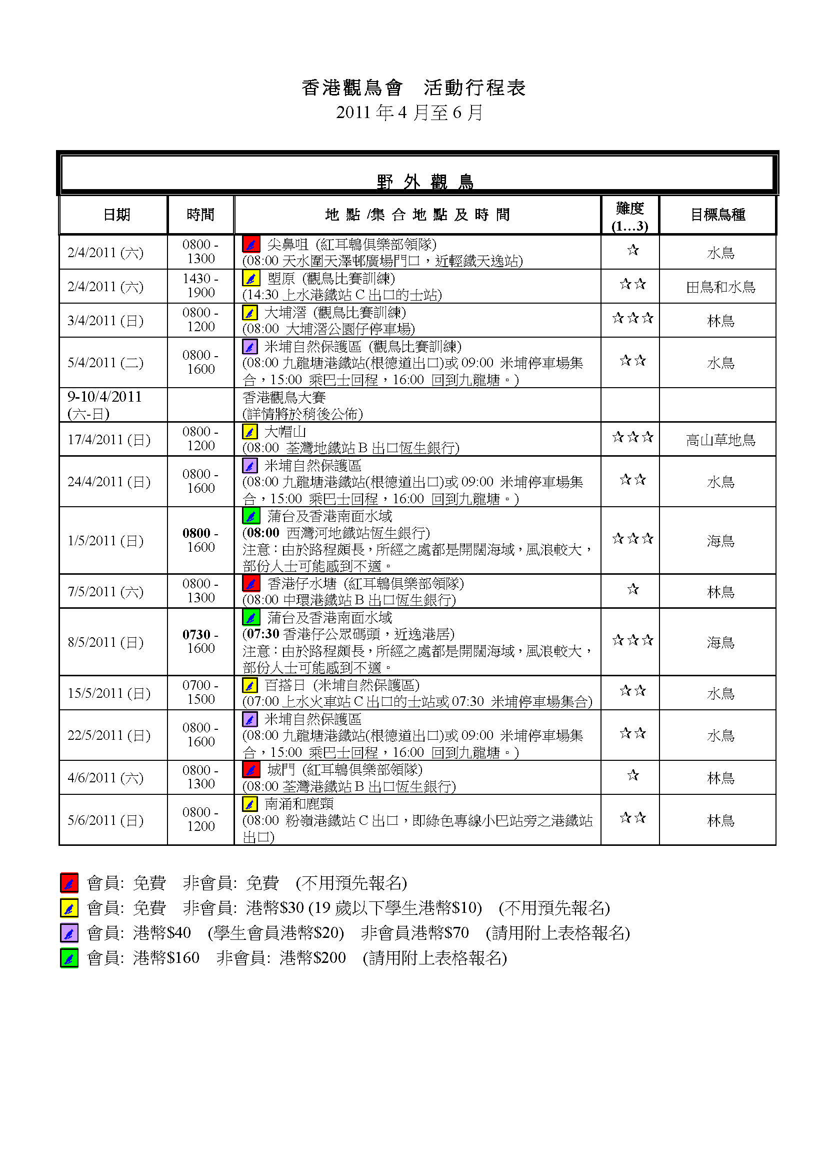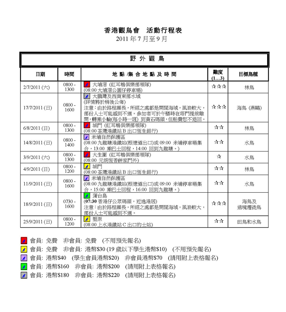 Please pay the fee to activity leader when you arrived the gathering place.