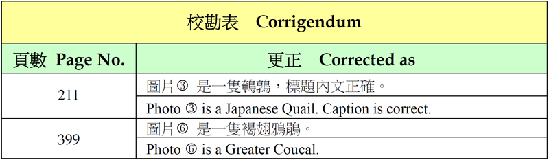 香港鳥類圖鑑(增訂版)校勘表 Corrigendum Photoguide to the Birds of HK (Revised Edition)
