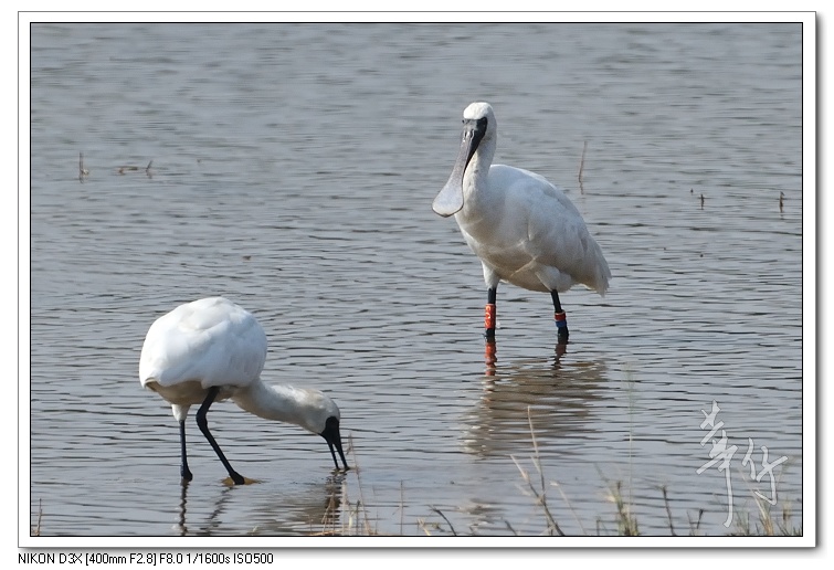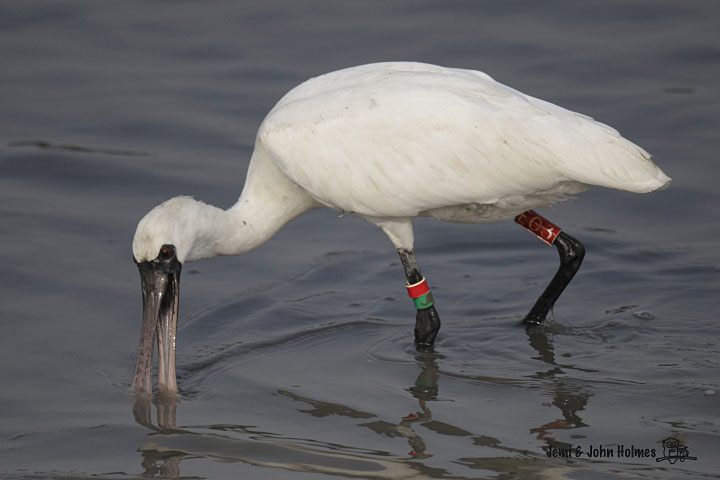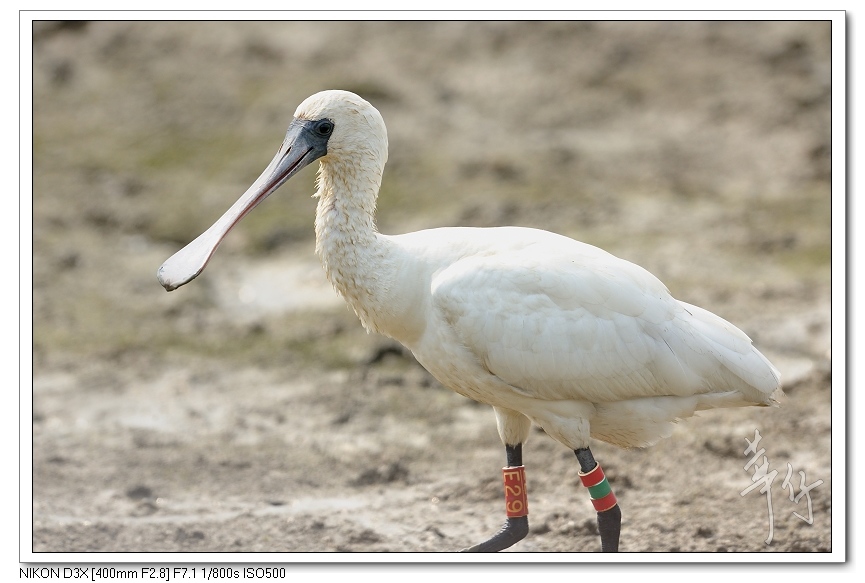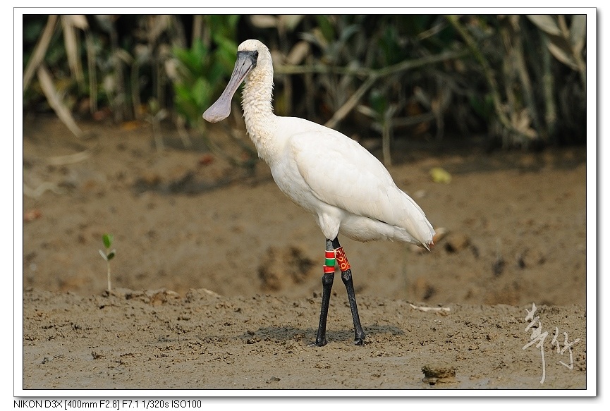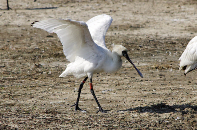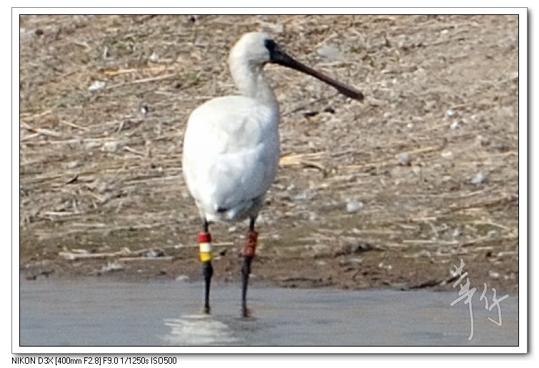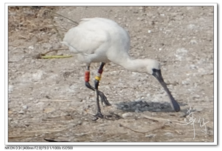 紅色的編號環代表這隻琵鷺是在韓國環誌的。