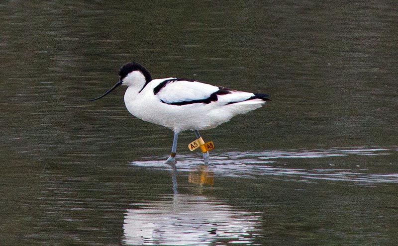 Only waders will get coloured flags, so that we can follow the movements of these birds along the flyway when they are seen. /this is part of a scheme involving several countries along the flyway, each with it's own colour scheme. Waders are ideal for this study because the flags are easy to see in the field at a long distance, and provide information about the movement of the bird.