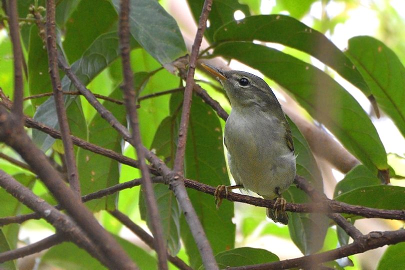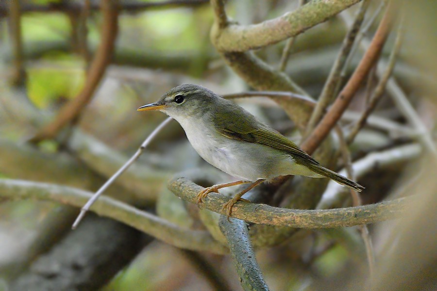 Your photos show very well the features mentioned by Paul Leader above - a superficial resemblance to Eastern Crowned Warbler in the body but a very different head pattern, grey head with no central crown stripe, weak eye-stripe and thin supercilium, also the white eye-ring and pinkish lower mandible in your third photo.