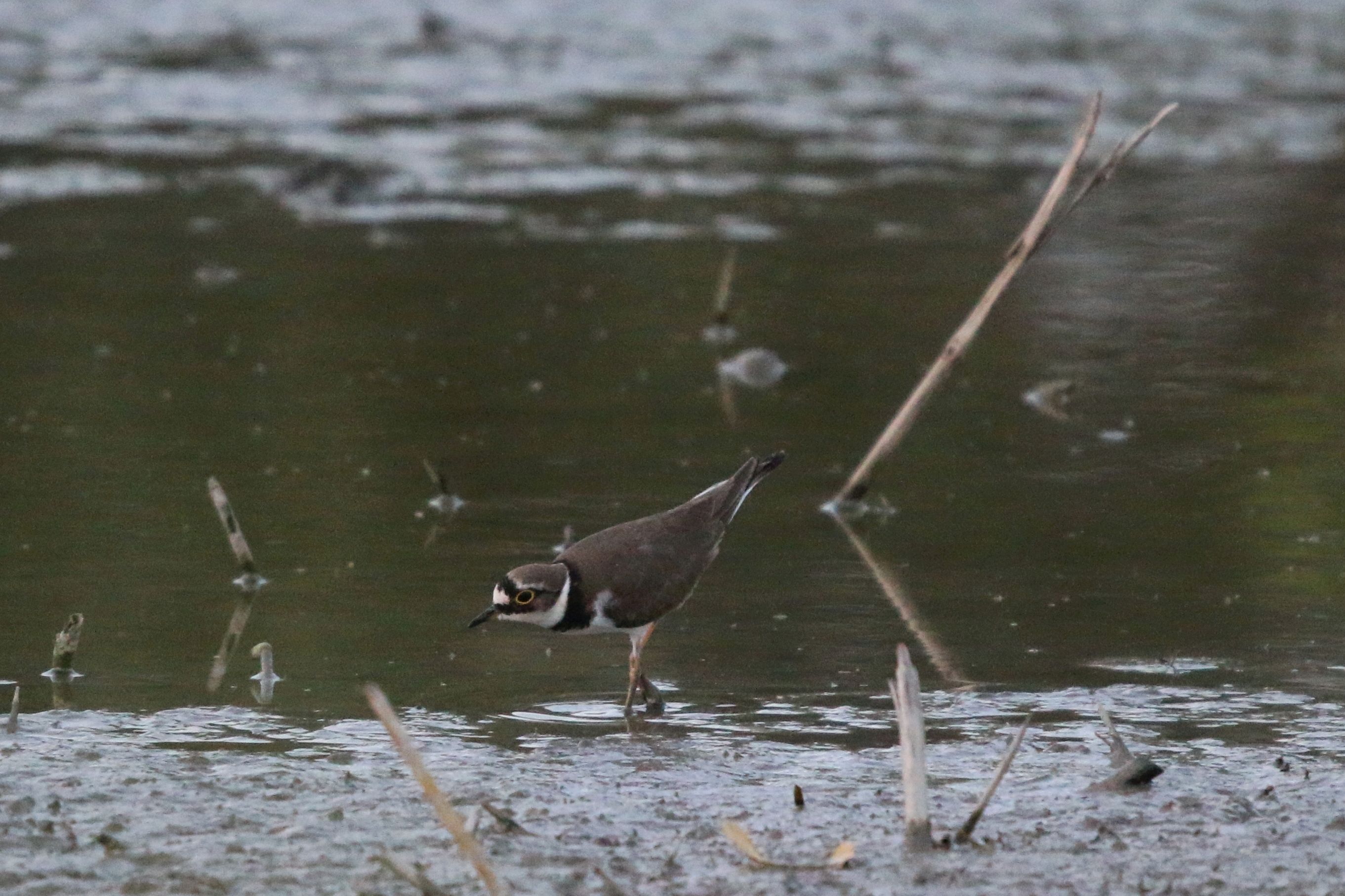 It's a Little Ringed Plover. The yellow eye-ring is distinctive.