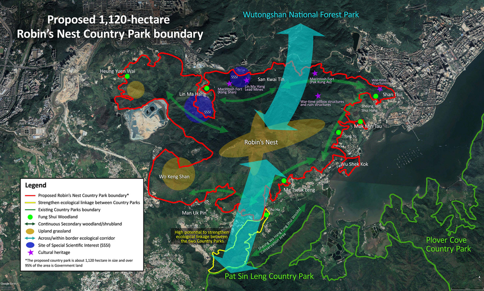 The Government promised in the 2017 Policy Address that Robin’s Nest will be designated as a Country Park[1]. The Secretary of Environment Mr. Wong Kam Sing also confirmed in December 2018 that the designation of the Robin’s Nest Country Park (RNCP) is on its way and will be the 25th Country Park in Hong Kong[2]. We support this new Country Park as the conservation importance of Robin’s Nest has been repeatedly recognized since its identification as a potential Country Park some 26 years ago. We consider that the Country Park system is suitable for the protection, conservation and management of important ecological resources in the Robin’s Nest and associated areas (“Robin’s Nest area”). Below are the key justifications and principles that we expect the Government to follow in the upcoming RNCP designation process.