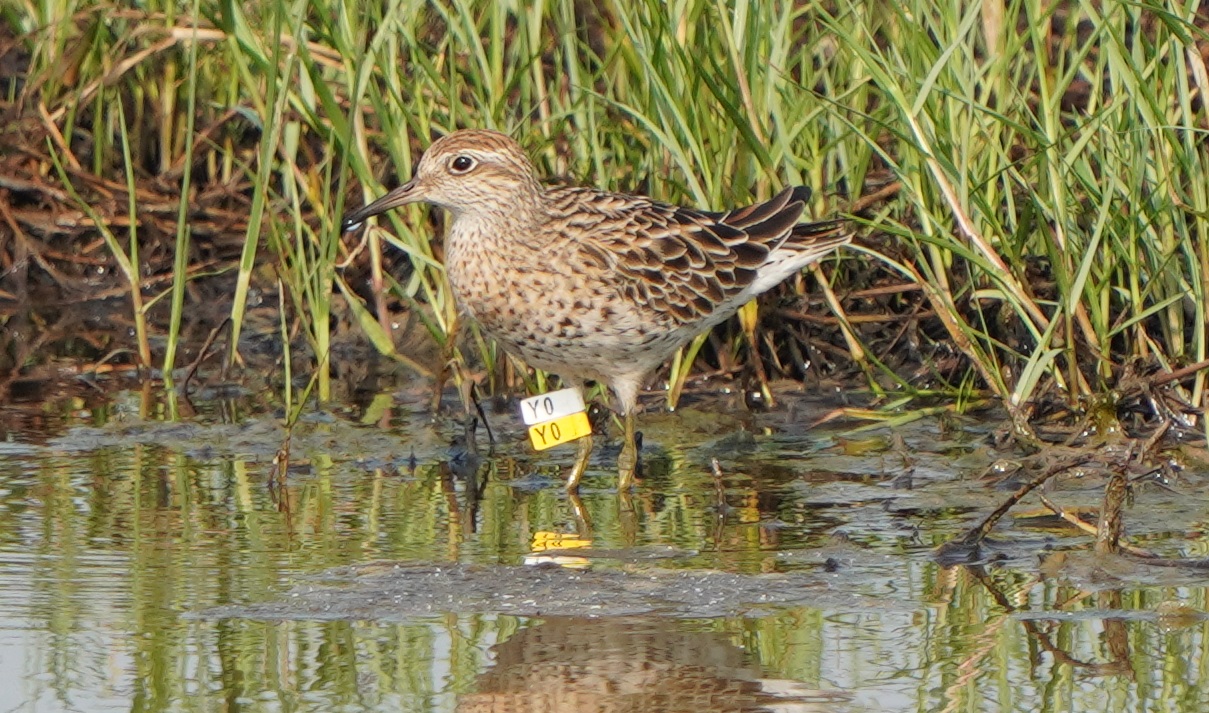 Sharp-tailed Sandpiper Y0 was just ringed 2 days ago on 11-Apr.