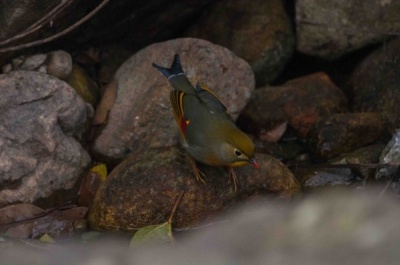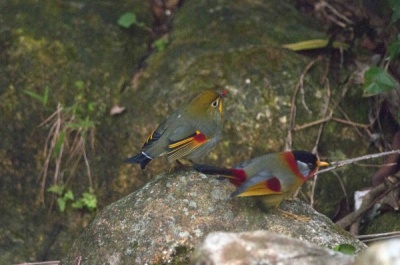 On 30.12 2012, I have seen one of Red-bill Leiothrix and a flock of Silver eared Mesia taking bath at Lung Fu Shan (龍虎山). I took the Photos.    On 03.1.2013, I also seen them at the same place.