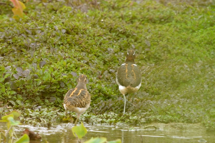 A pair of greater painted snipes suddenly appeared at Long Valley on March 28th.  They quickly paddled through a lily pond mounted a muddy curb then disappeared behind the water weeds.  This was a ten-year event encounter.