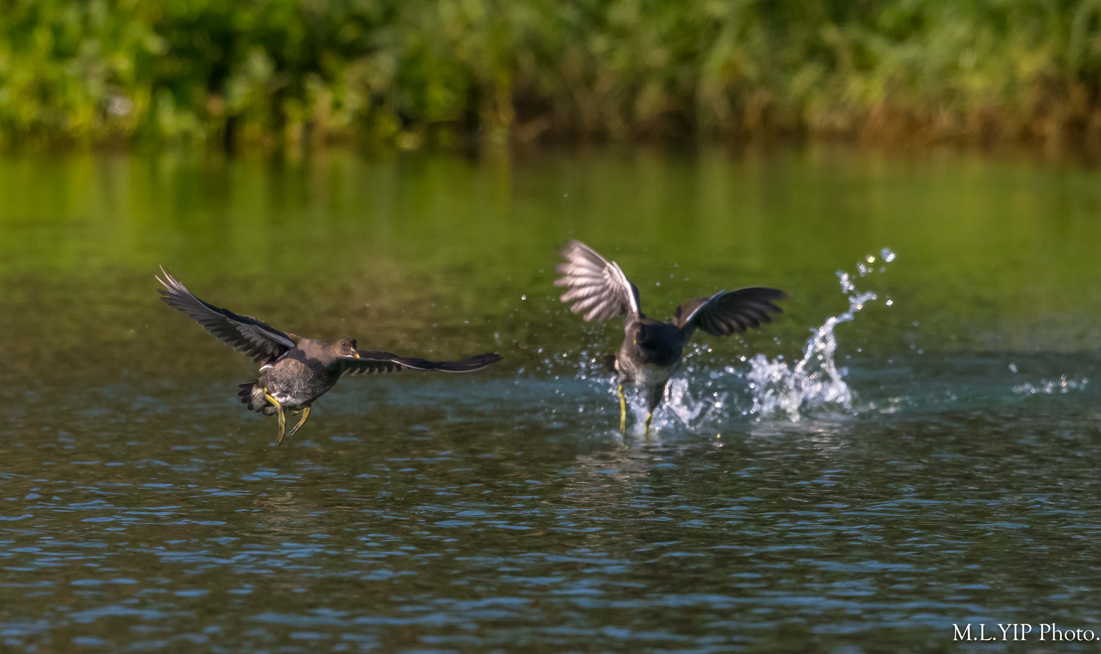 兩隻黑水鷄幼鳥在追追逐逐.