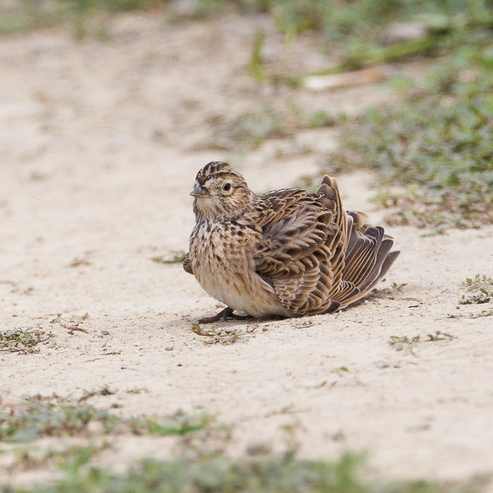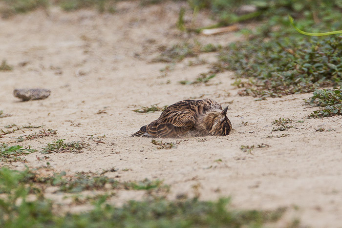This Eurasian Skylark looks as if it is dead. In fact it was dustbathing.