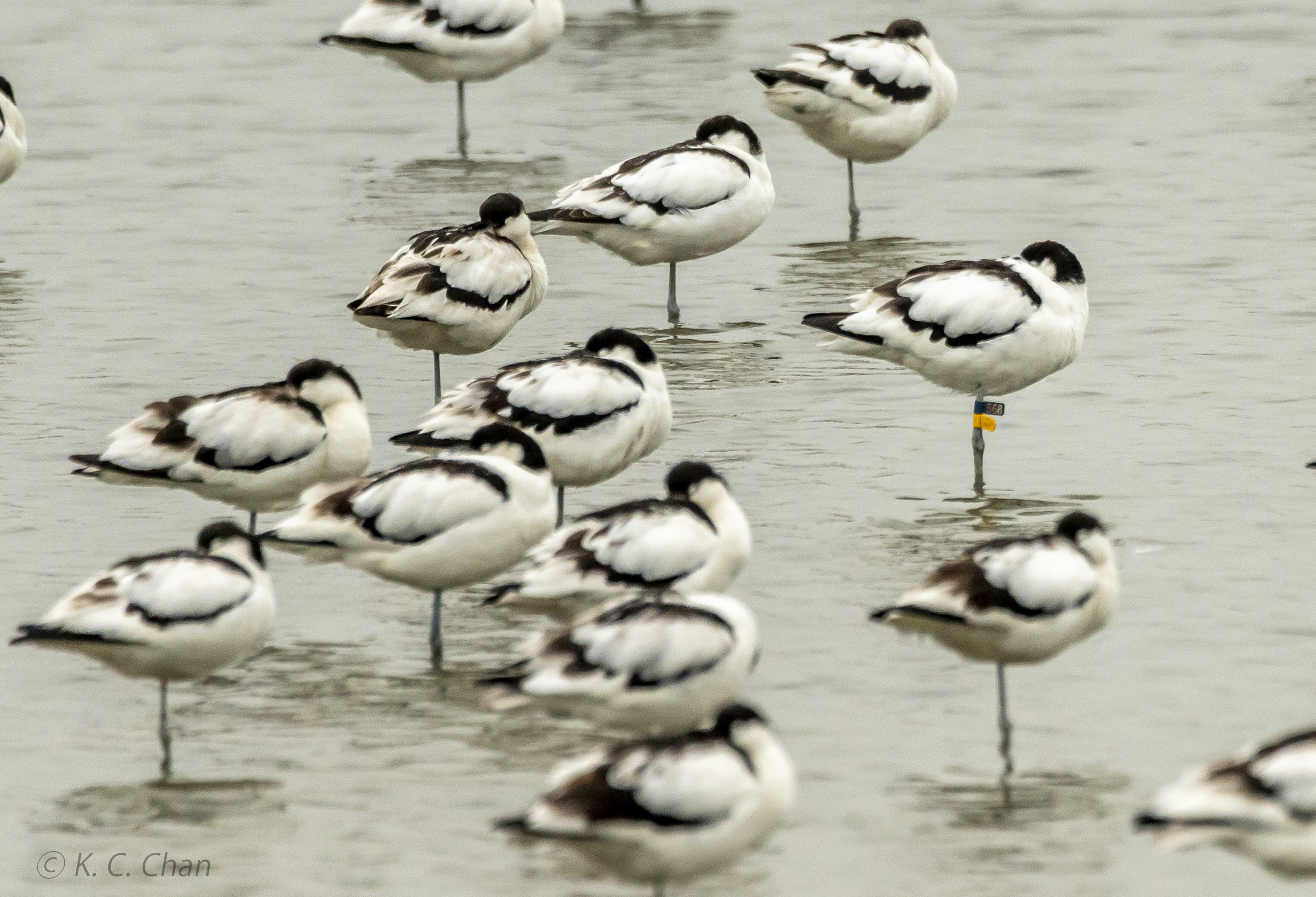 Pied Avocet blue-over-yellow S68 was ringed by researchers of Beijing Normal University in Nanpu, Hebei, China. It was ringed as an adult on nest on 5-Jun-20. It is carrying a GPS-tracker and was reported earlier in Shenzhen in Feb. I'll pass the sighting to them.
