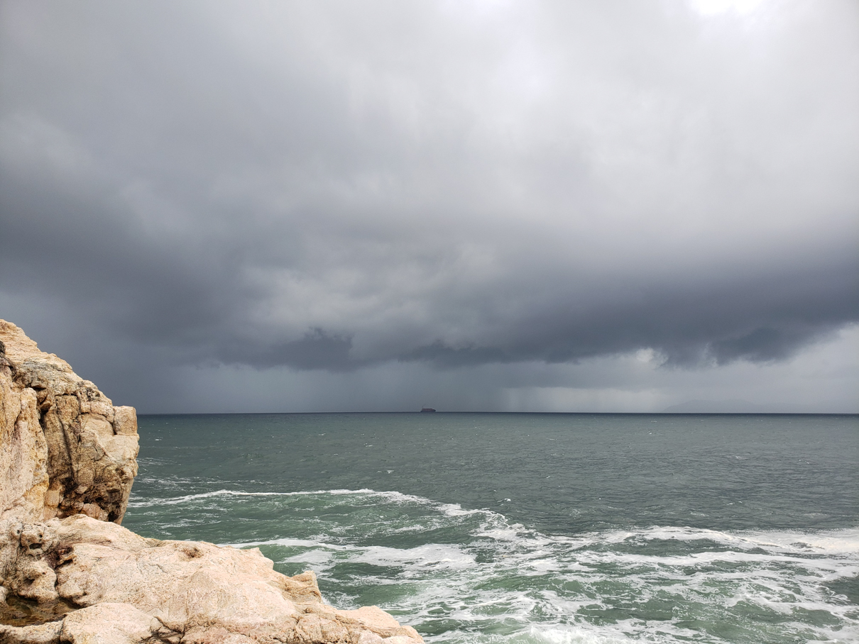 Previously, my main concern was finding a safe and suitable seawatching spot. A usual spot on the rocks is generally out of the question during a typhoon (T8). It is not only outright dangerous for yourself, but you risk harm to or even loss of your equipment. The steady waves and salt sprays are not the biggest tread, but the unexpected large waves that can catch you by surprise are.