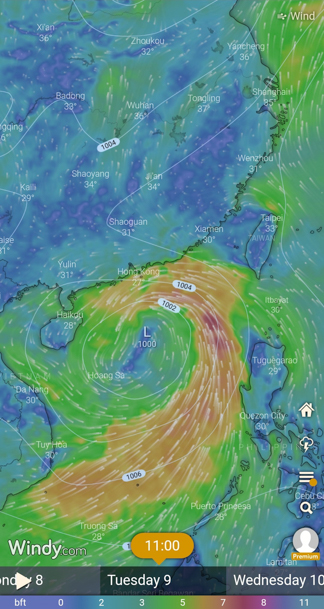We’ve seawatched on the last day of this month, as part of my very first dedicated storm seawatch survey, with storm signal T8 being in force at some time during the survey. The storm was ‘Tropical Cyclone Chaba’, which moved south of Hong Kong and from east to west. The prediction for Friday (1 July) looked promising on Windy: