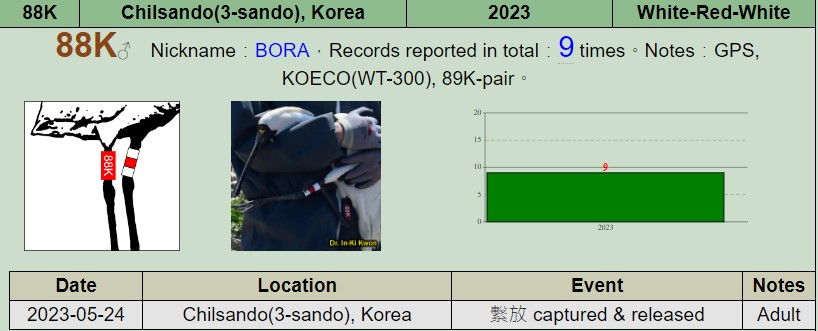 88K剛剛去年繁殖季才在Korea戴上腳環,
