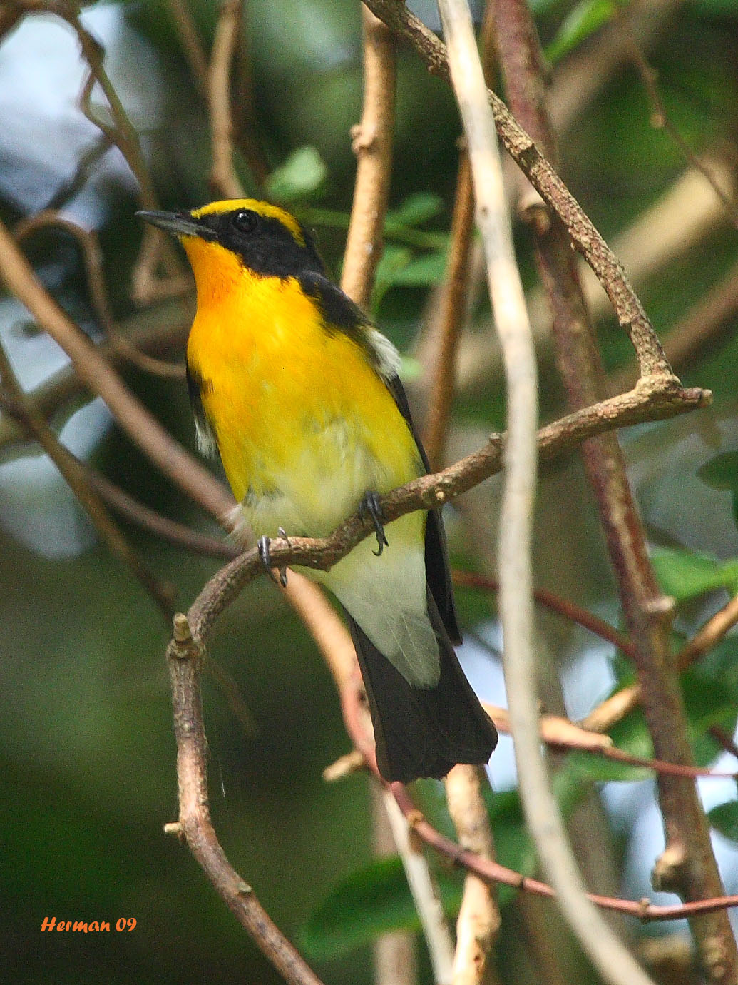 Stand on the helipad and wait for the bird to appear about two-thirds the way up the tree. It can take some time before it appears.
