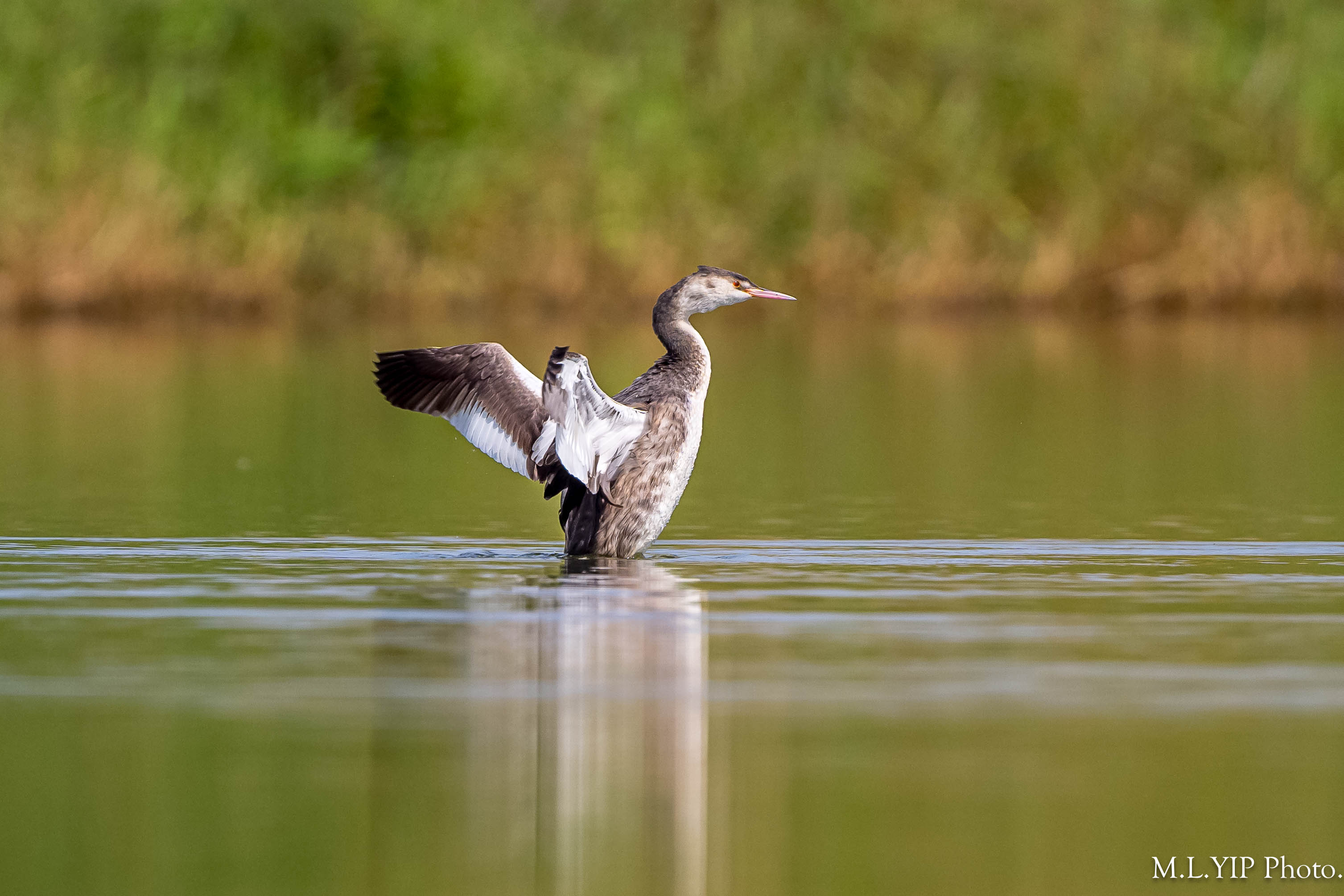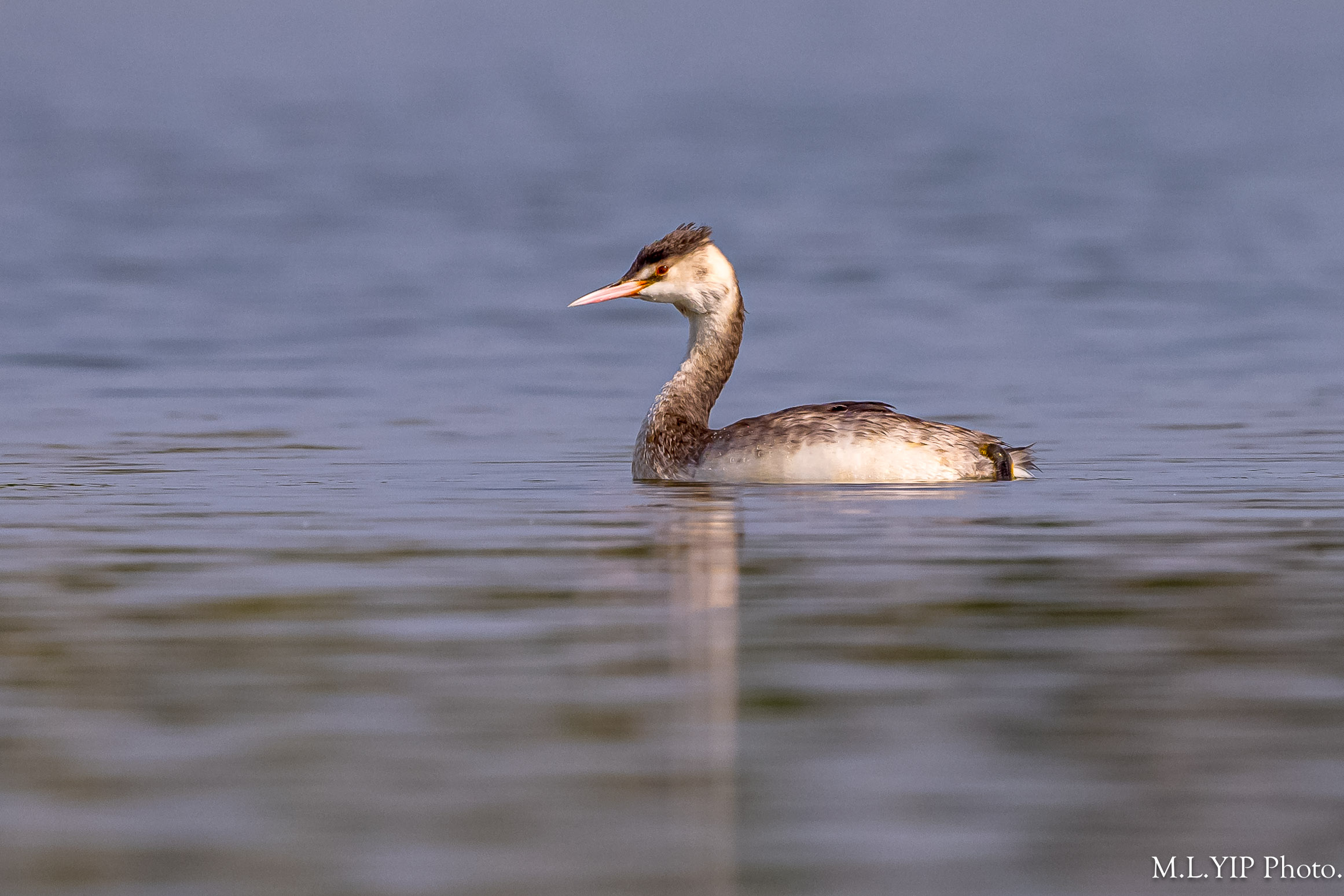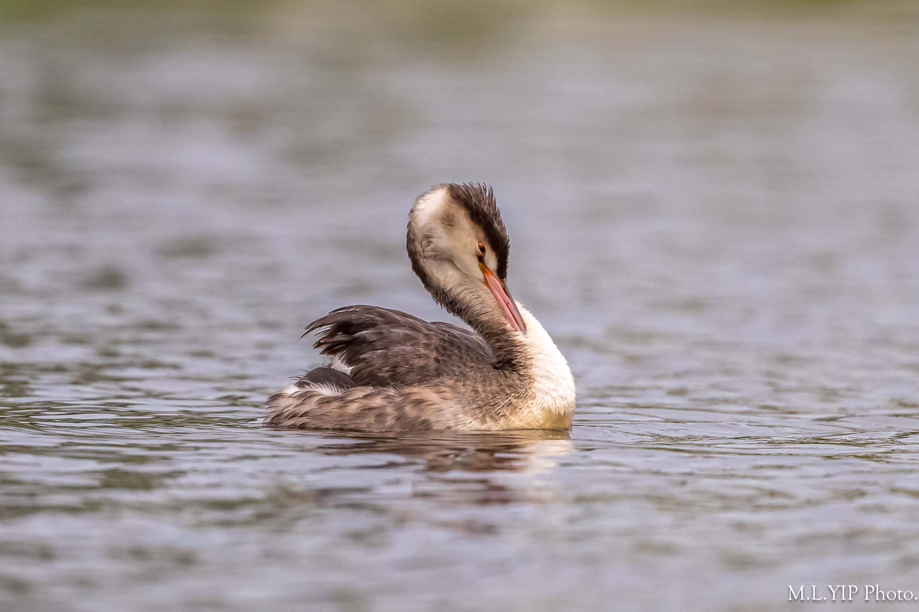 相比去年十二月份的照片,鳳頭鸊鷉的"食水線"明顯較低,不知道是否它的體重增加了