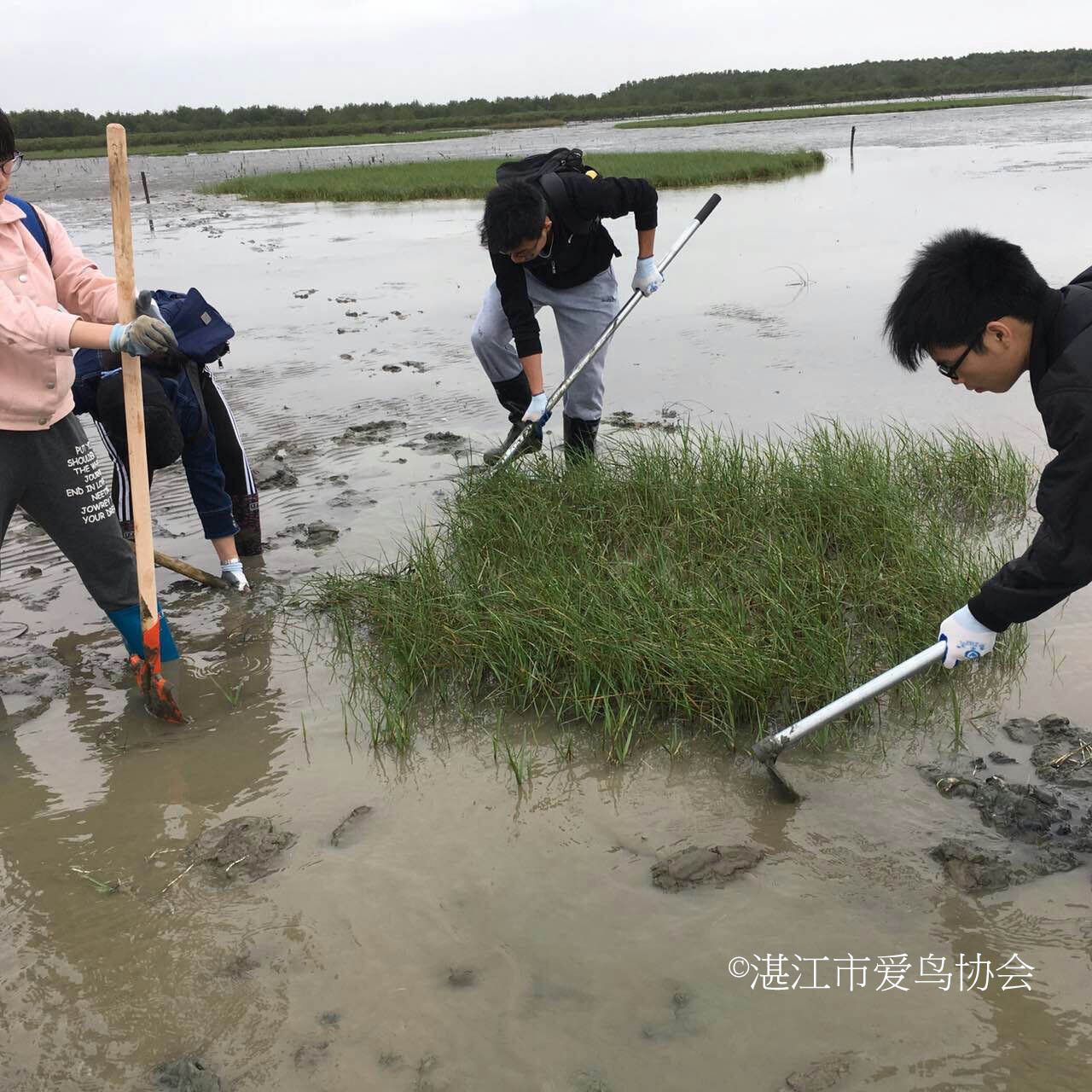 保育勺嘴鹬--雷州清除互花米草的活动