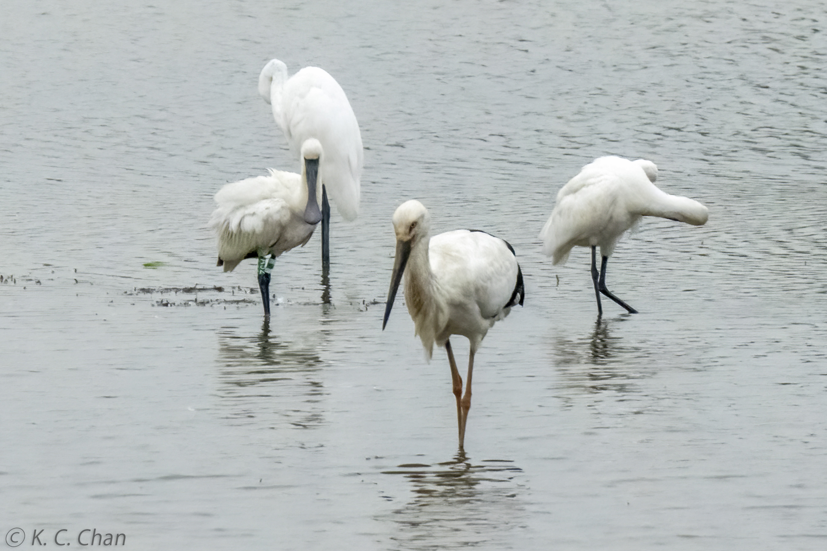 黑臉琵鷺 A52 與 東方白鸛