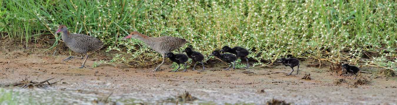 Slaty-breasted Rails (family of 8) 灰胸秧雞一家八口