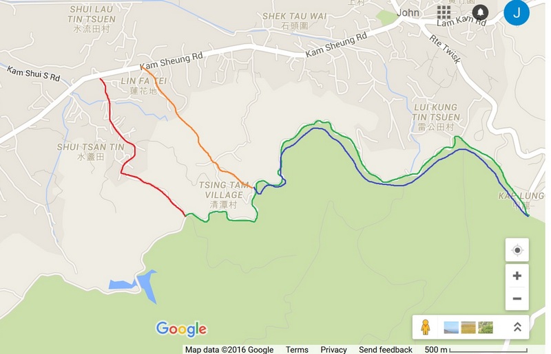I have uploaded a map of my usual route. Red then Green then Blue then Orange. At the interchange between Red and Green there is a white type Pagoda shelter. The top of the Red path (the cemetery) is where the Needletails were. I don't see why you couldn't just walk all the way to Ho Pui though, I only take this route because it is convenient for me. I sometimes go up an unofficial hiking trail to my little "Tai Po Kau" forest. I won't post that here as people could get lost.