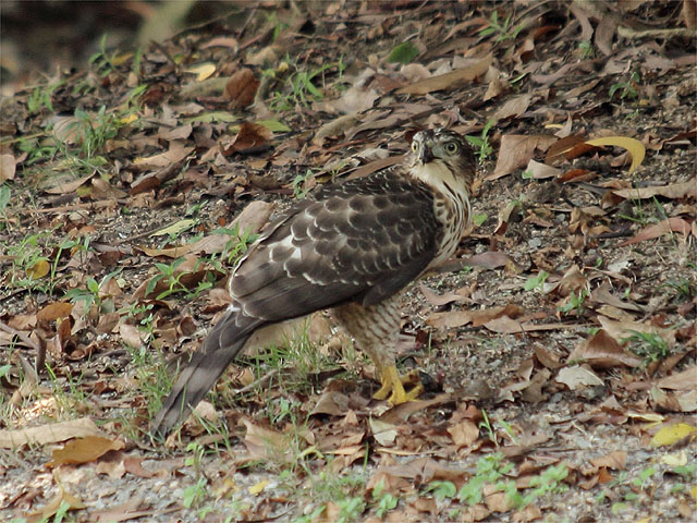 有高手指点过,凤头鹰的脚比较短、比较粗,所以我认为这只是凤头鹰(幼鸟)。