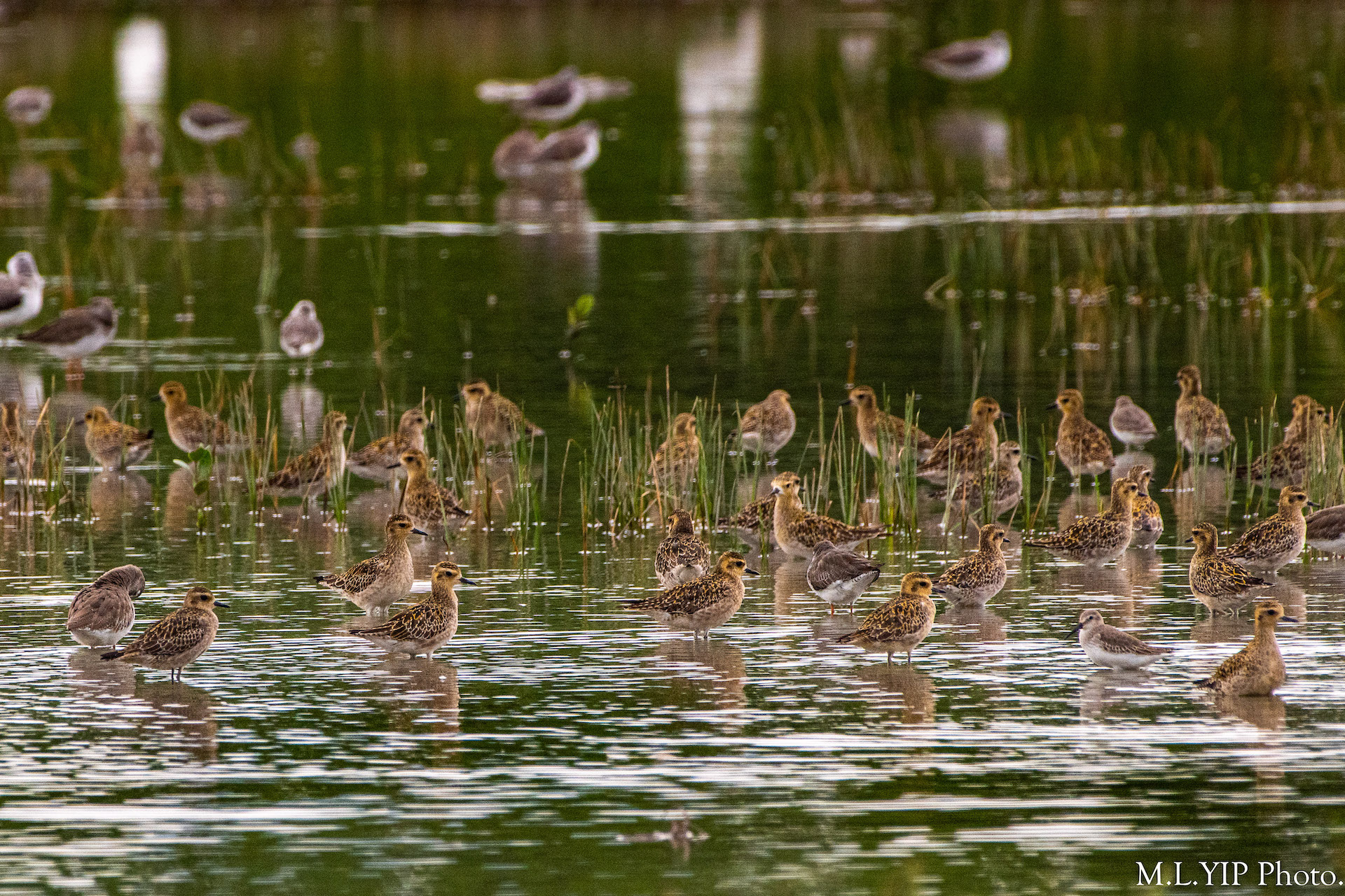 泥灘有群金斑鴴.