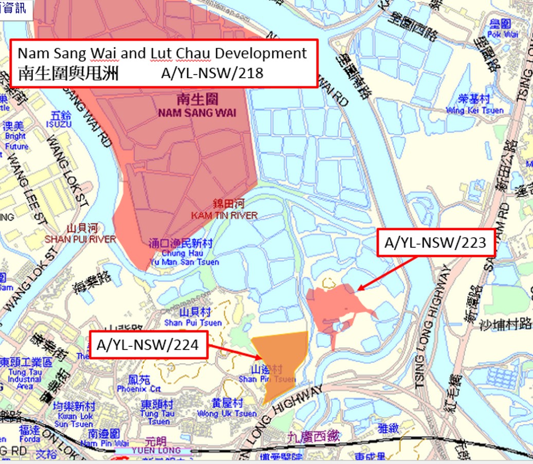 There are two other planning applications for residential developments along the southern edges of Nam Sang Wai (Application numbers: A/YL-NSW/223 and A/YL-NSW/224). Both of these are submitted by the same developer! They are also located within the Wetland Buffer Area.