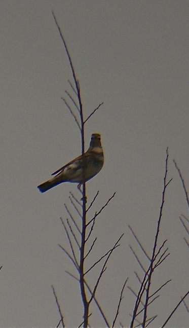The first bird to show was a fine female Grey Bushchat perched on an overhead wire. A couple of minutes later a large yellow-bellied bunting landed on another wire - a stunning male Red-headed Bunting! There are plenty of excellent photos on the Red-headed Bunting page: