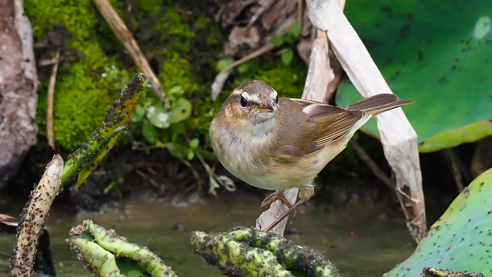 Dusky Warbler above, Daurian Redstart below.