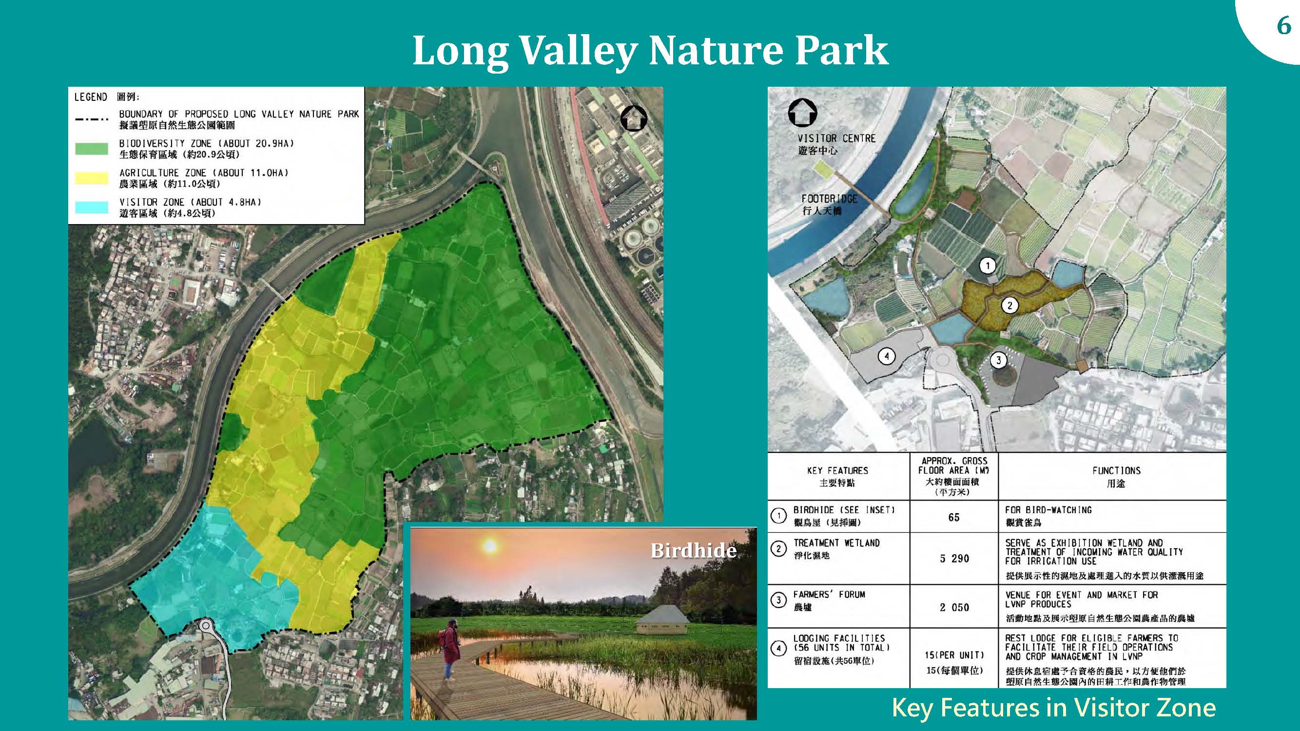 According to the paper submitted by the Development Bureau to Panel on Development of the Legislative Council (LegCo) early this year, the 37-hectare LVNP will be divided into three zones: Visitor Zone (about 4.8 hectares), Eco-agriculture Zone (about 11 hectares) and Conservation Zone (about 20.9 hectares)[2]. Eco-friendly agriculture will be practiced in Eco-agriculture Zone and Conservation Zone in order to conserve the agricultural characteristics and ecological value of Long Valley.